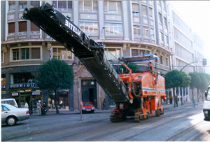 Fresado de asfalto en carretera Ruta de la Plata, Zafra (Badajoz)Fresado de asfalto en varias calles de LeónFresadora BITELLI SF 150Aglomerados León PisonadoraCamión de riego